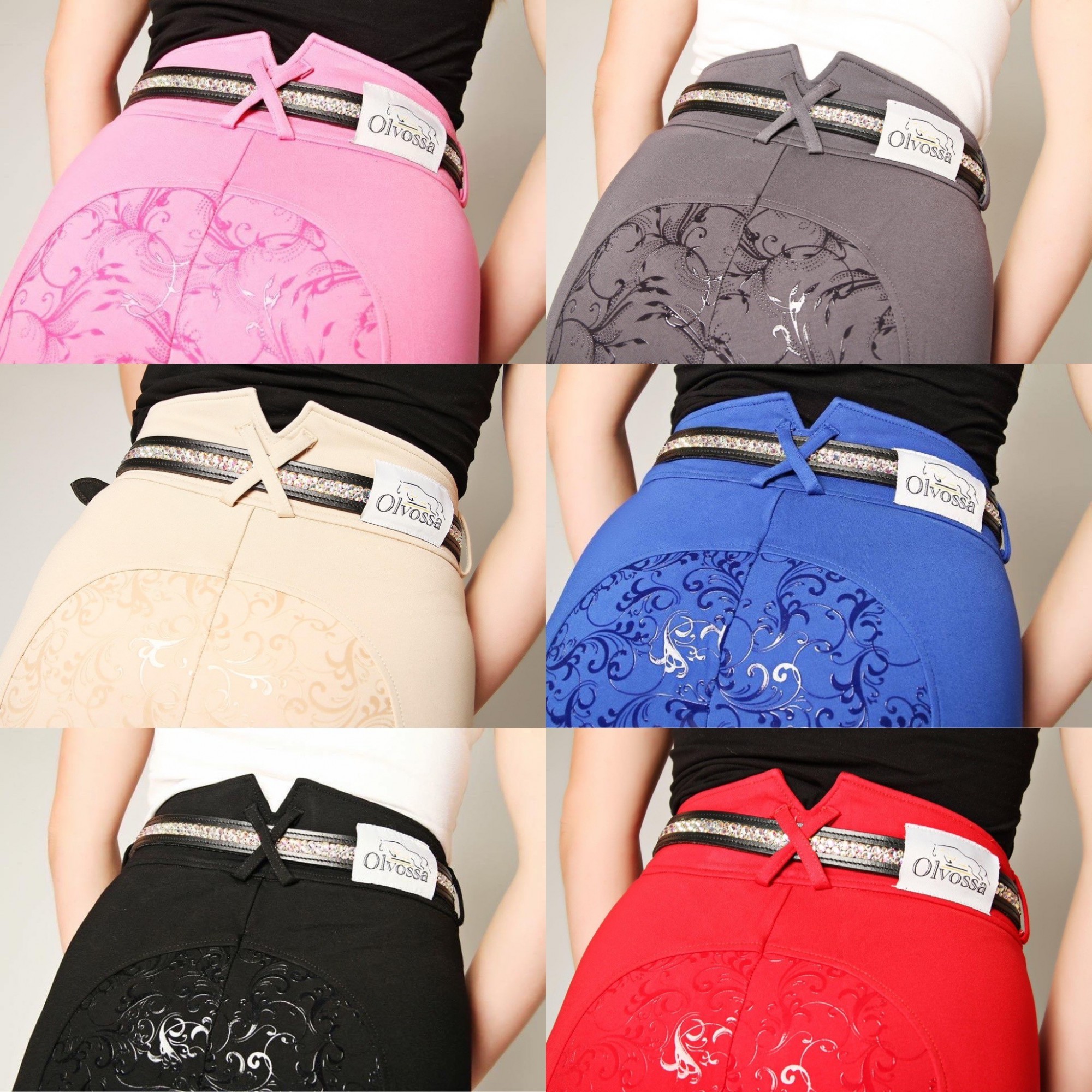 The Olvossa Full Silicone Seat Grip Ladies Breeches are a superior choice. Beautifully tailored, they offer a truly elegant figure hugging appearance with their high waist and lycra fit ankles.
